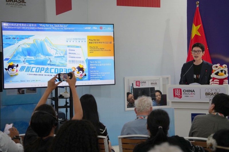 这一幕出现在巴西当地时间11月18日,在贝伦举行的《联合国气候变化框架公约》第三十次缔约方大会(简称“COP30”)“基于游戏等数字技术的气候行动探索”的中国角边会上。